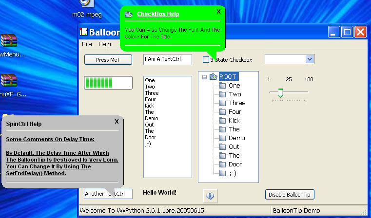 This class has been written in order to be integrated in the wxPython library. It is useful to recreate the Windows XP Balloon Tip help that we usually see in the taskbar.