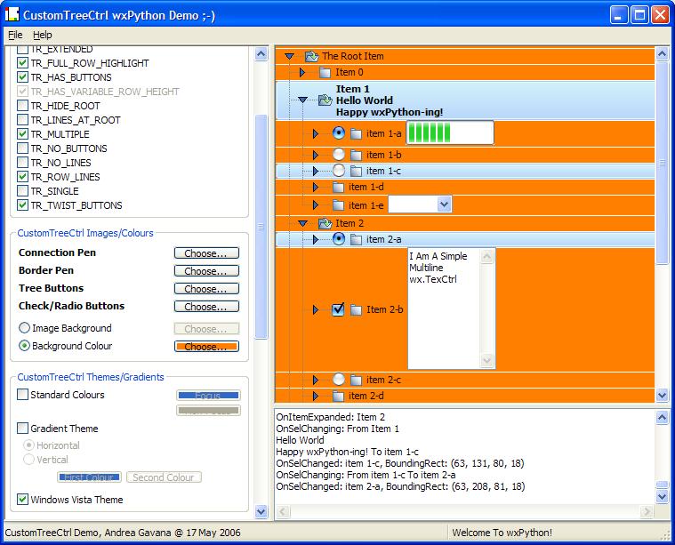 - Setting the CustomTreeCtrl check/radio item icons to a personalized imagelist;