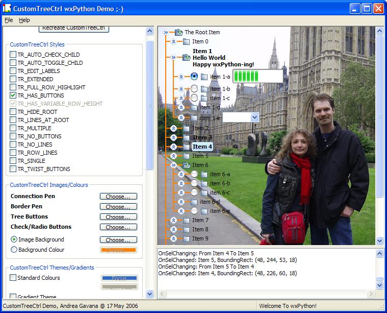 - Using an image as a CustomTreeCtrl background (currently only in "tile" mode).
