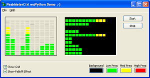 Warning: Unless you are supporting a wxPython version older than 2.8.9.2, you should use the PeakMeterCtrl that ships with wxPython (in wx.lib.agw).
